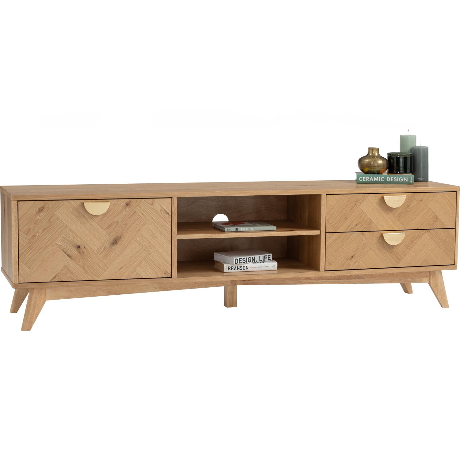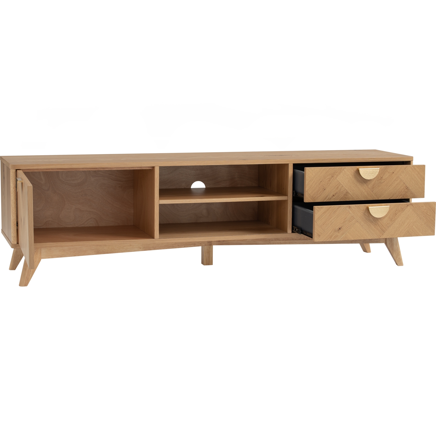 22 people are viewing this product!Loftus 1.8M TV Cabinet in Oak veneer body with Natural colour leg