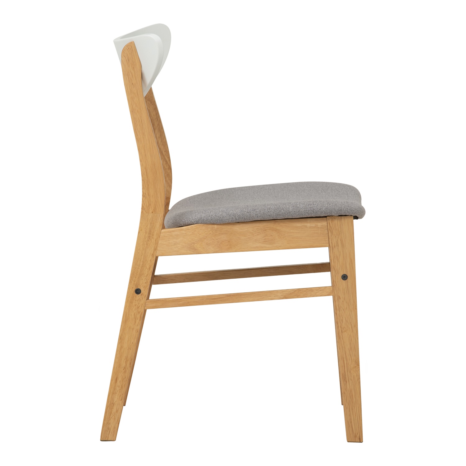 Macy dining chair with Natural colour leg, White colour back rest and Light Grey colour Drill fabric seat