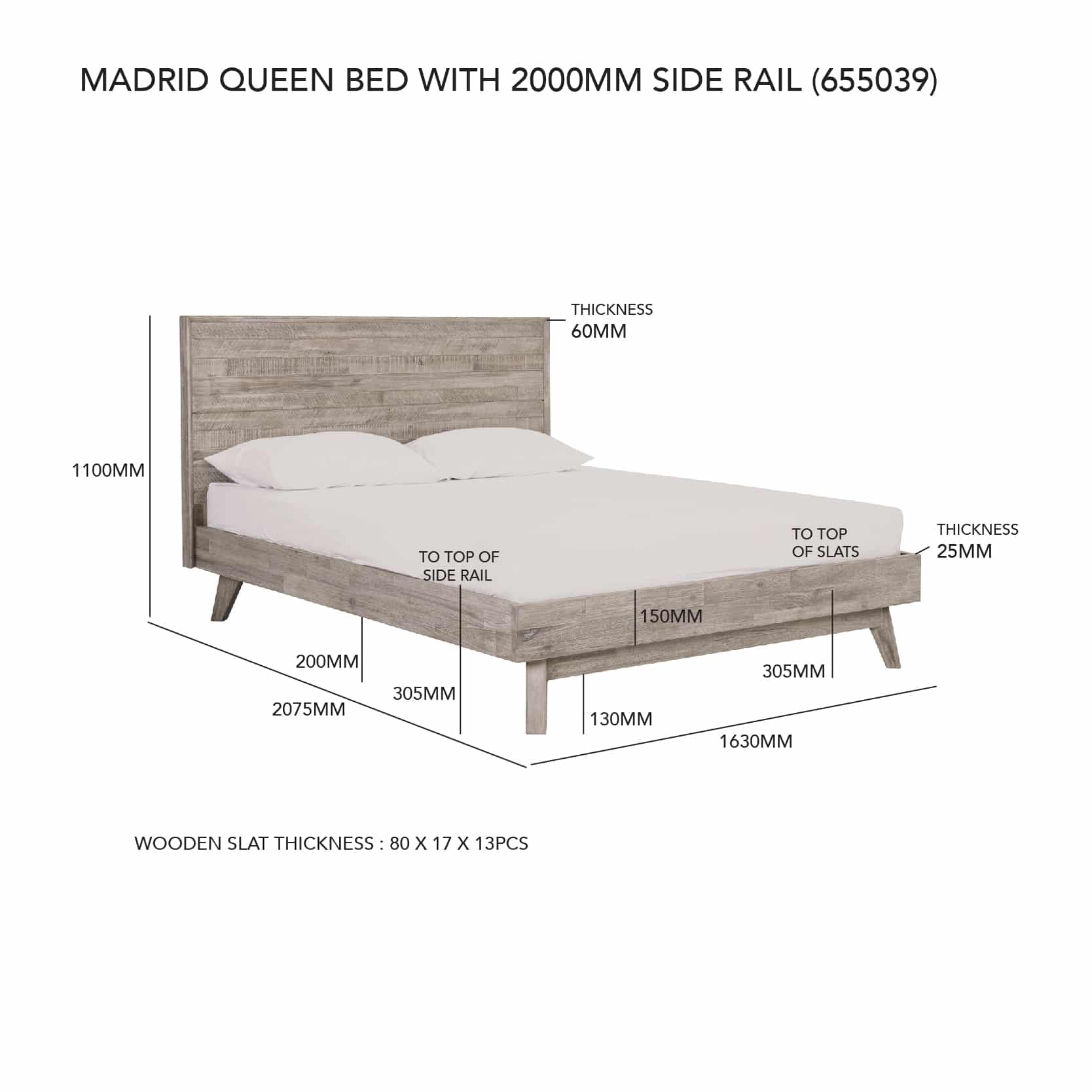 MADRID QUEEN BED WITH 2000MM SIDE RAIL WITH BOX BED FRAME 1808 (#)