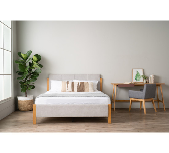 Mayer Queen bed on Black colour leg, Light Grey colour Savana fabric (Fit mattress: 1520mm x 1910mm)