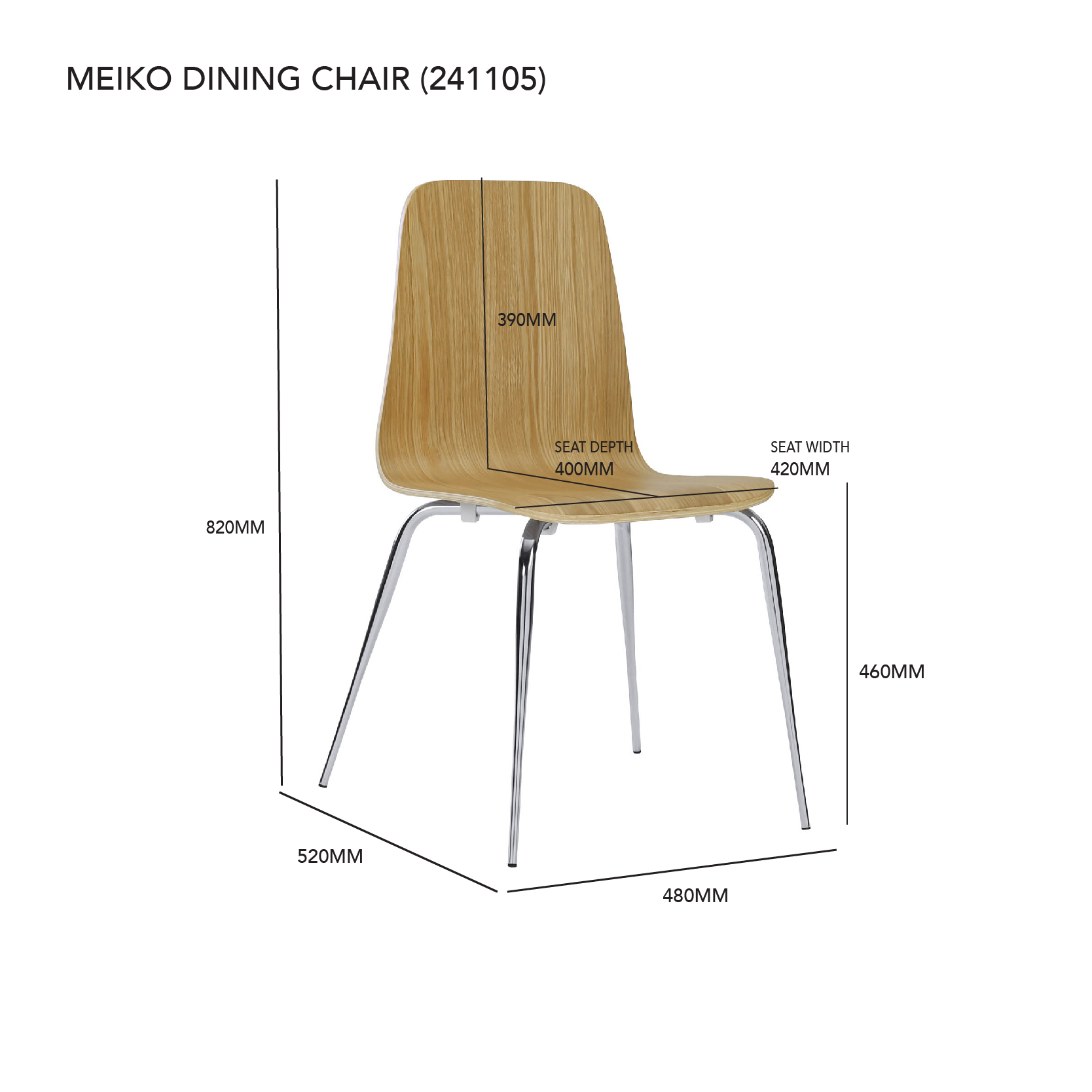 Meiko dining chair with Chrome Plated leg, Oak Veneer seat and backrest