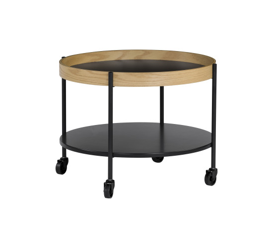 Mendel round coffee table with Black colour top and Oak veneer frame, Matt Black Epoxy leg