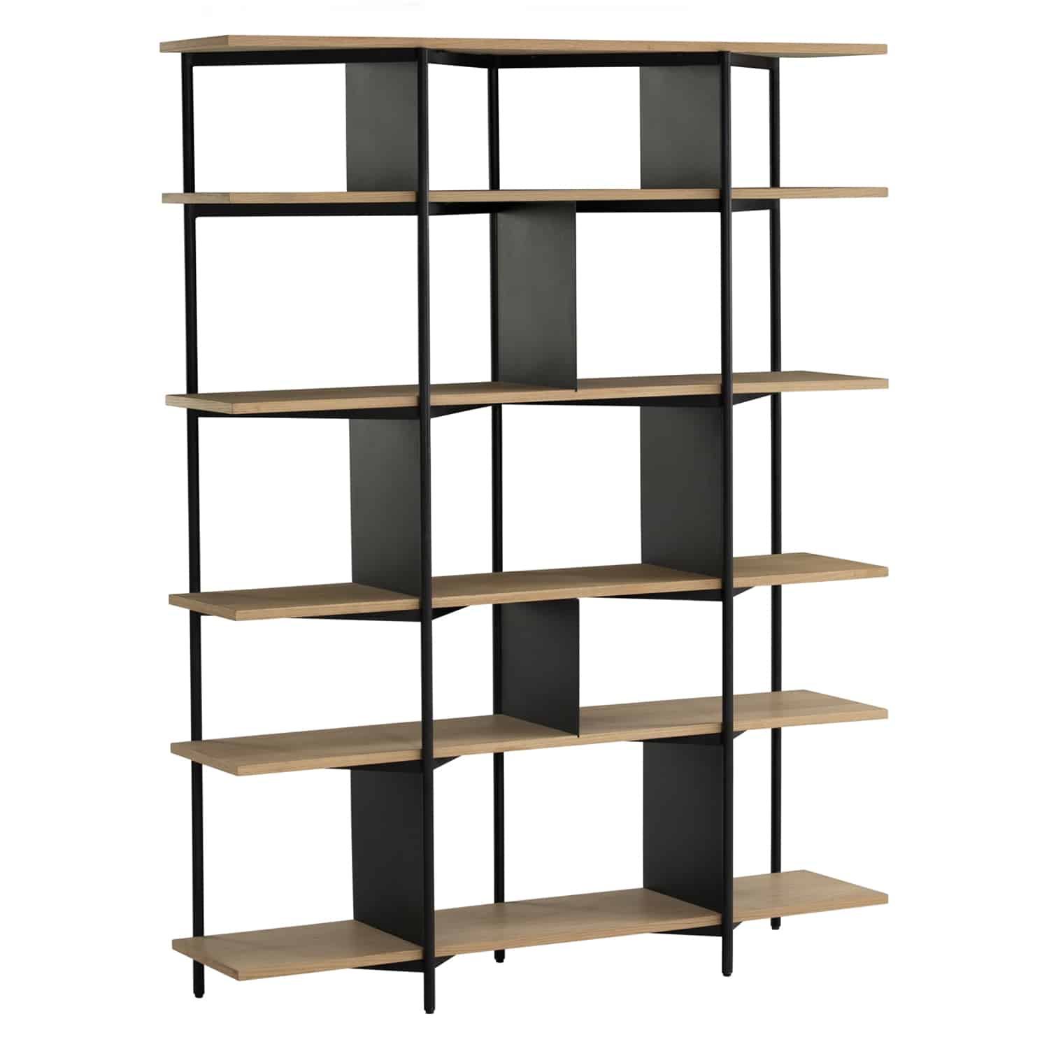 Merton Bookcase with Sand Black colour frame, Natural Oak colour shelve