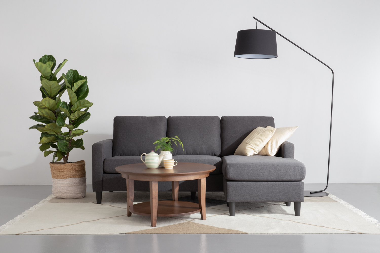 Micra L-Shape sofa in Black colour leg, Seal Dimity fabric body