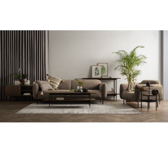 Mira 1 Seater Sofa with Matt Black Epoxy colour leg, Mocha colour Linsey fabric