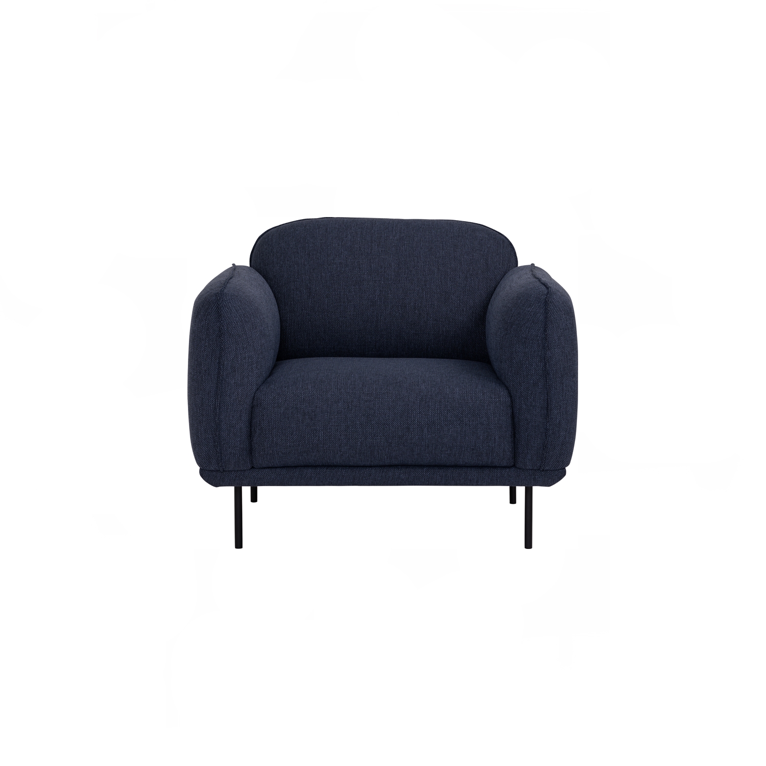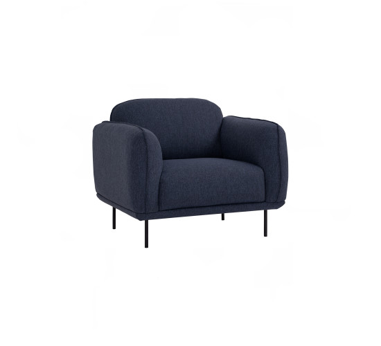 Mira 1 Seater Sofa with Matt Black Epoxy colour leg, Midnight Blue colour Linsey fabric