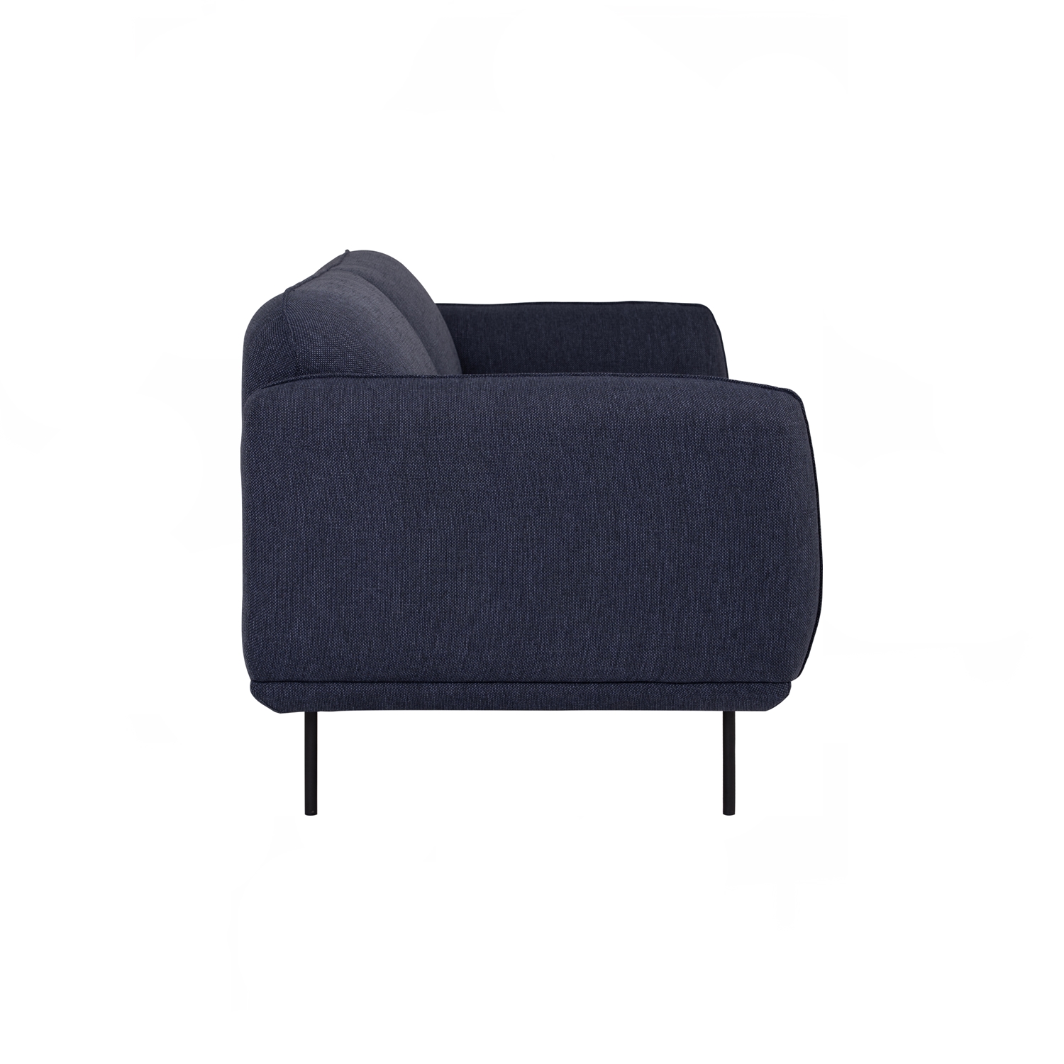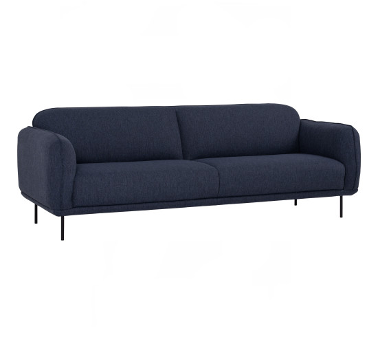 Mira 3 Seater Sofa with Matt Black Epoxy colour leg, Midnight Blue colour Linsey fabric
