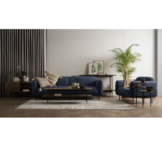 12 people are viewing this product!Mira 3 Seater Sofa with Matt Black Epoxy colour leg, Midnight Blue colour Linsey fabric