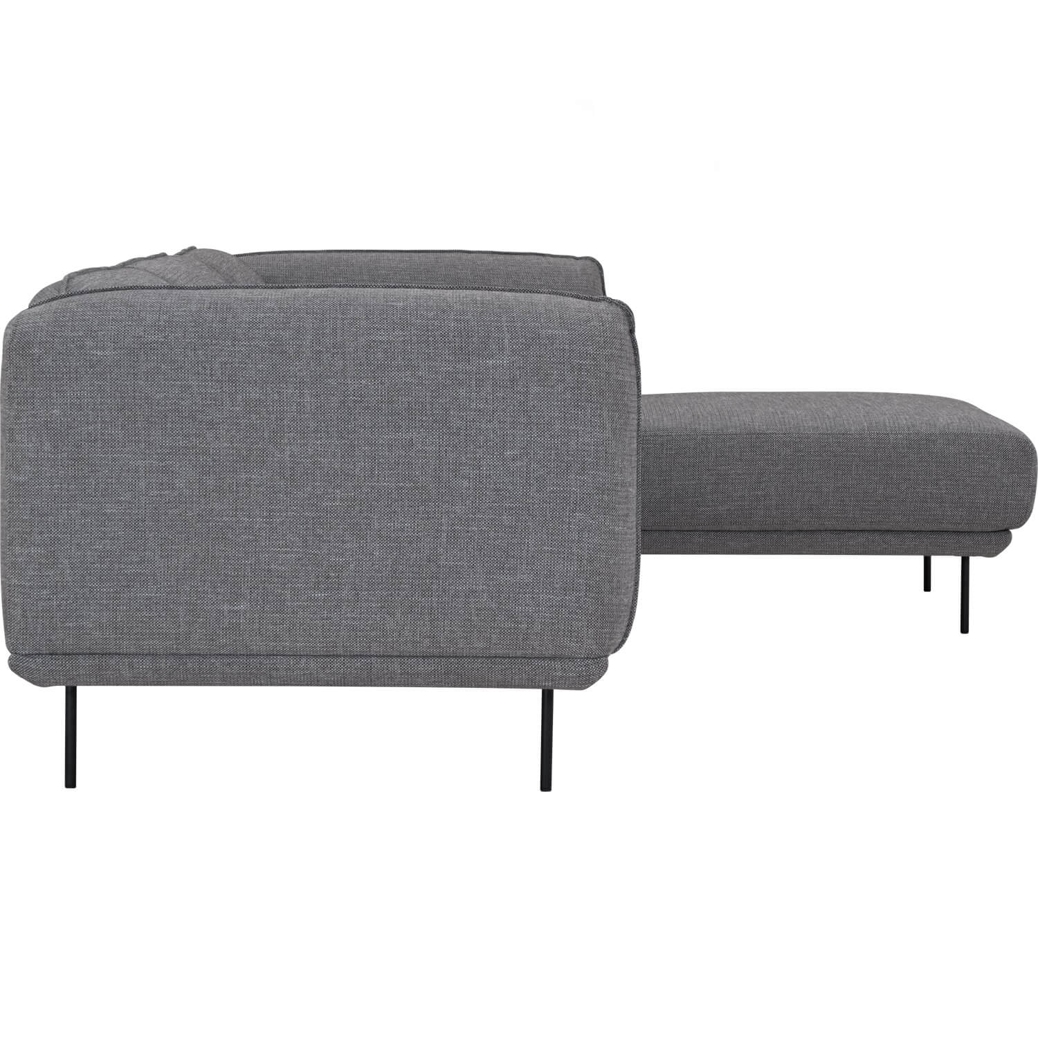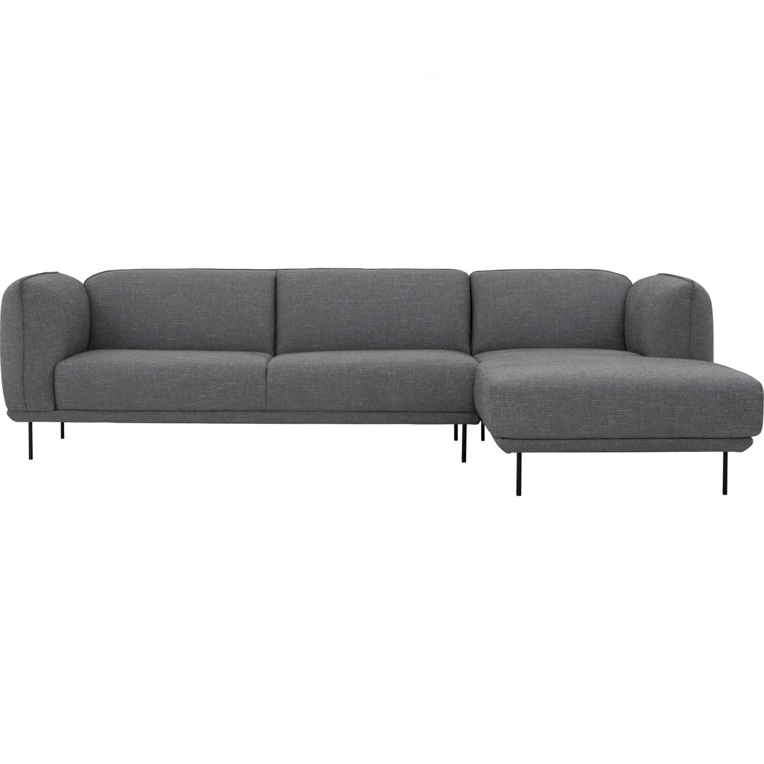 Mira 3 Seater Sofa with right chaise wit Matt Black Epoxy colour leg, Dark Grey 26 colour Bengaline fabric