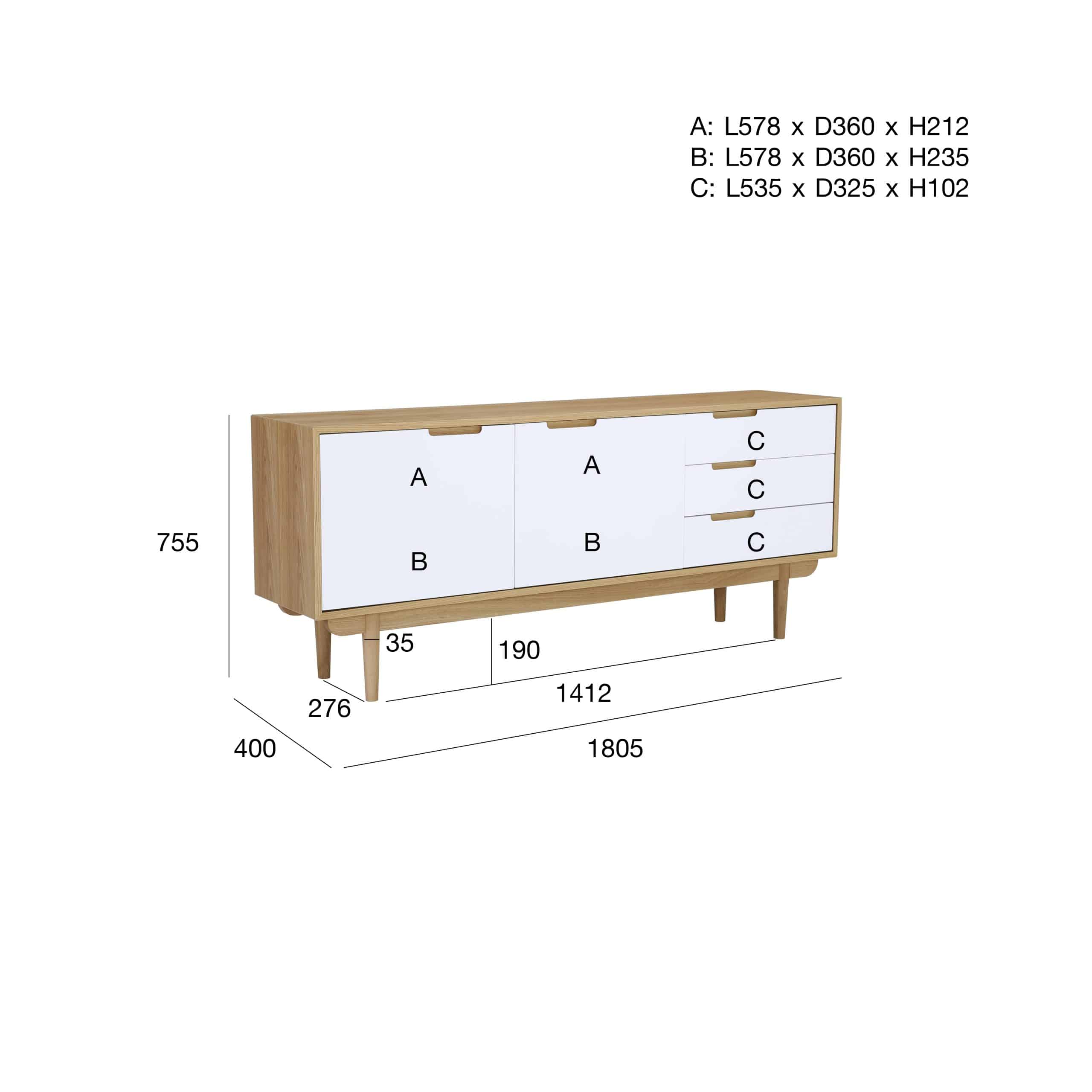 | Material | SIDEBOARD LEG: MALAYSIAN OAK SIDEBOARD BODY: MDF+ASH VENEER |