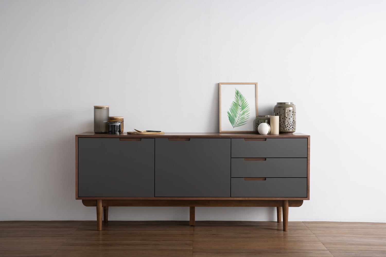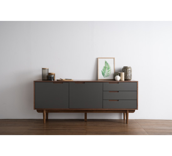 Nakula 1.8M Sideboard in Walnut veneer body, Gunmetal Grey colour door with Walnut colour leg