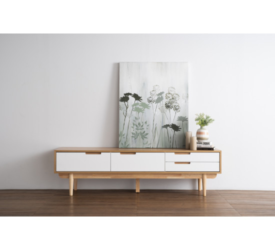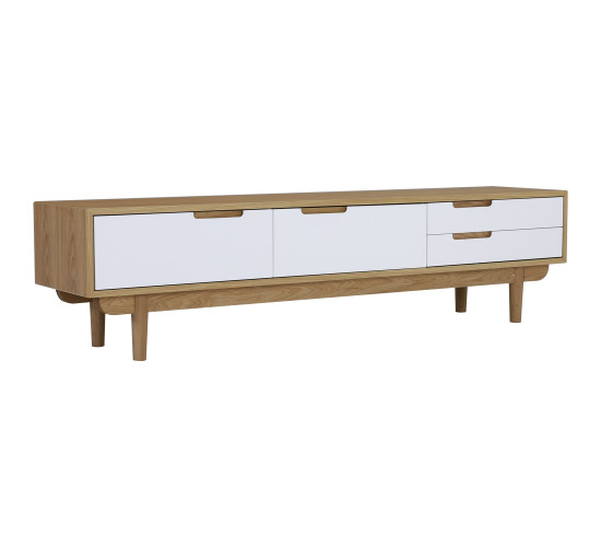 Nakula TV Cabinet in Oak colour body, White colour door, with Oak colour leg