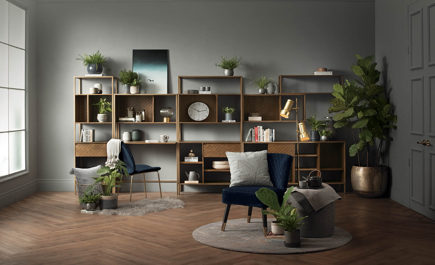 Nalanie Lounge Chair with Black and Gold colour leg, Navy colour Veloutine fabric