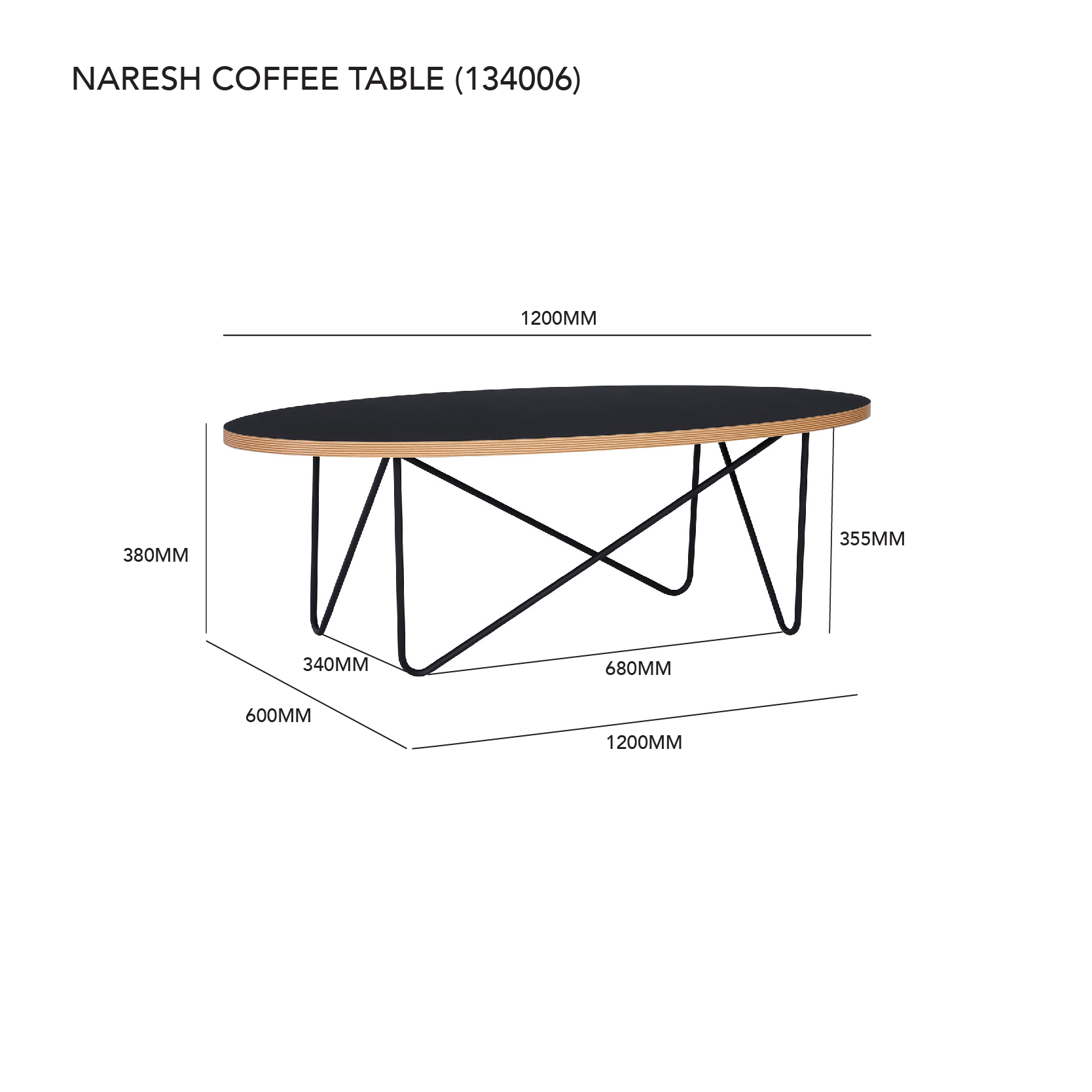 Naresh coffee table in Black colour laminated top, with Matt Black Epoxy leg