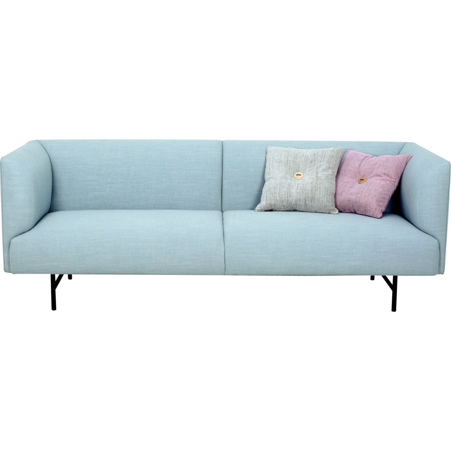 Navara Sofa with Matt Black Epoxy leg, Aquamarine colour Crepon fabric