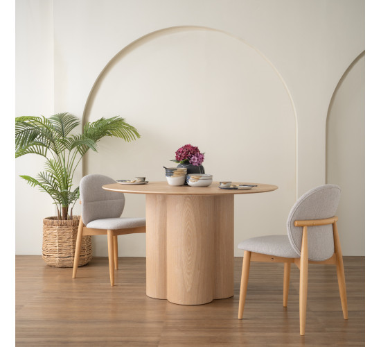 Olsen dining chair in Natural colour frame, Beige colour Ruby fabric