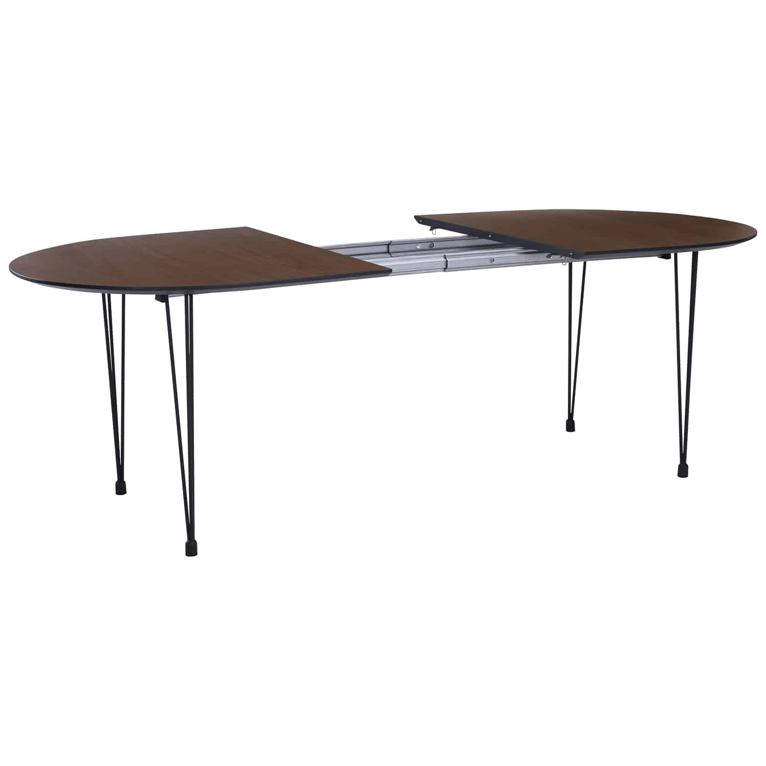 Omeo 1000×1700+500 Extension Dining Table in Matt Black Epoxy leg, Walnut veneer with Black colour extension leaf top
