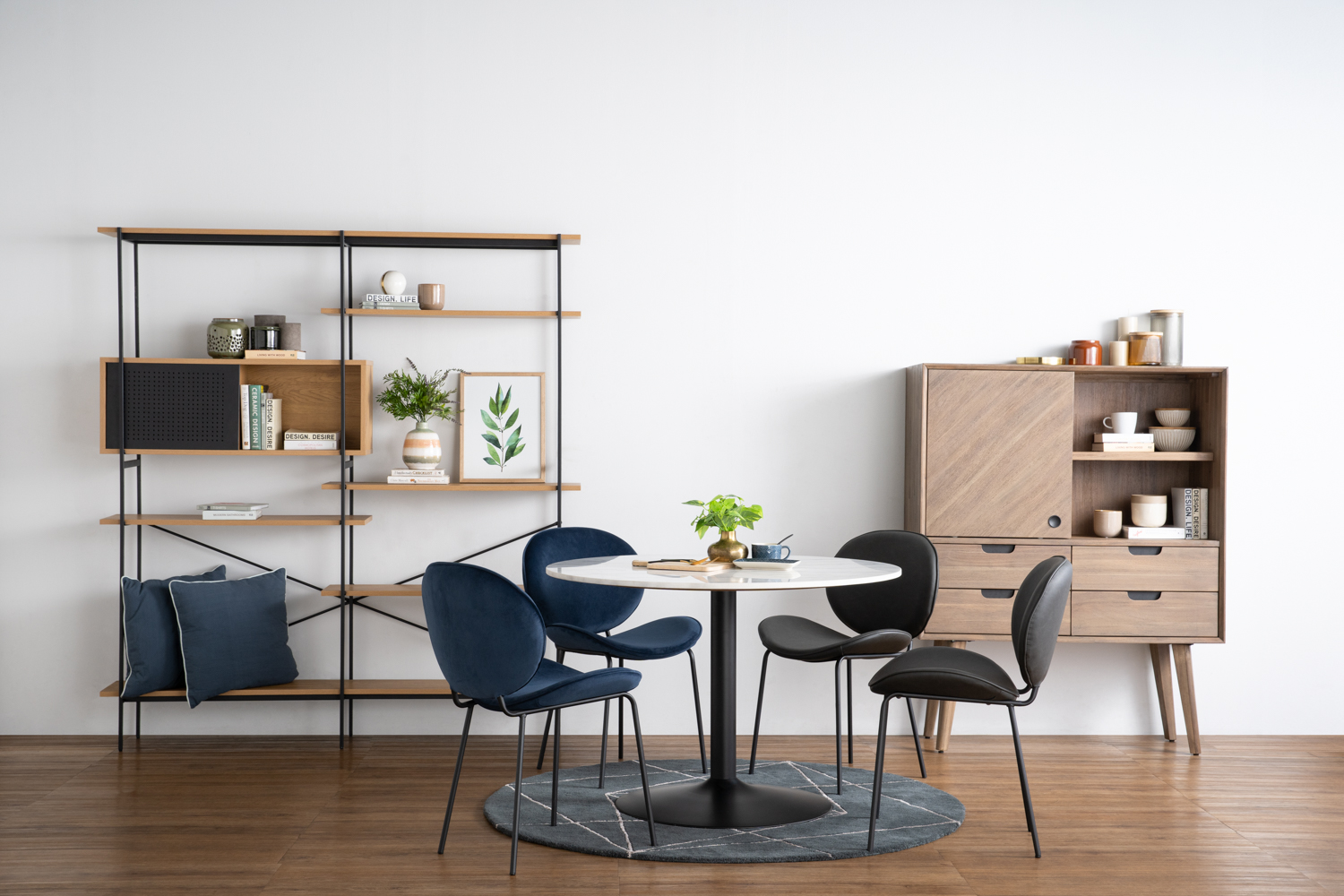 Ormer Dining Chair with Matt Black Epoxy colour leg, Navy colour Veloutine fabric