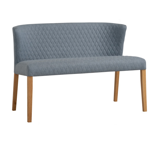 Rhoda 1.1m bench chair with Natural colour leg, Light Blue colour Double fabric seat & back