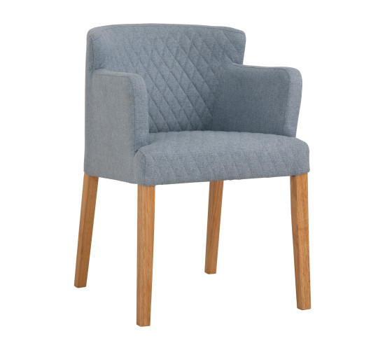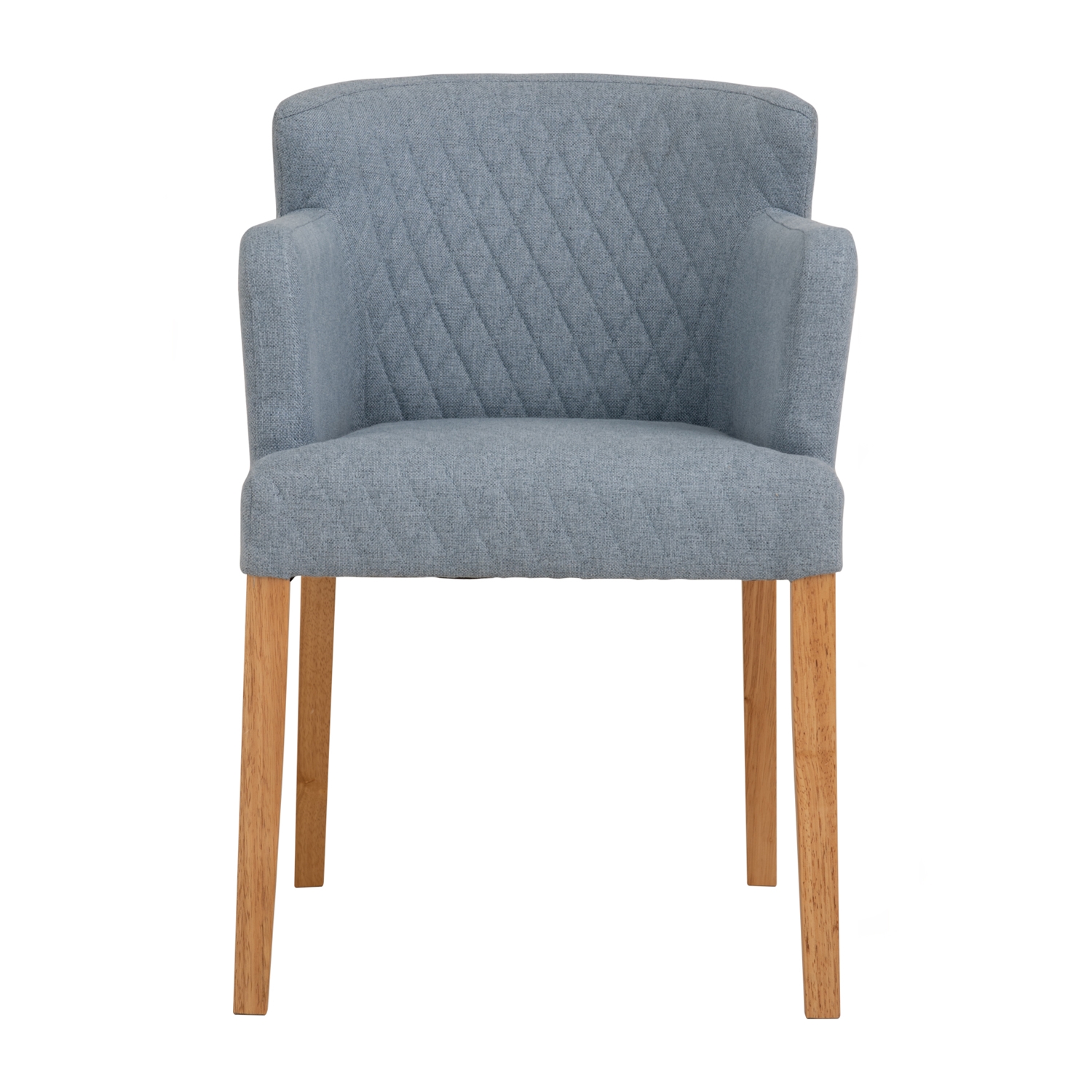 Rhoda arm chair with Natural colour leg, Light Blue colour Double fabric seat & back