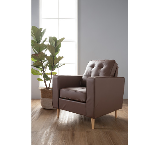 Royce 1 seater sofa in Natural colour leg, Mocha colour Premium Vinyl body