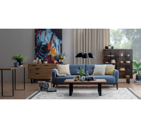 Sigma 3 Seater Sofa with Dark Grey colour leg, Jungle Green colour in Burrel fabric