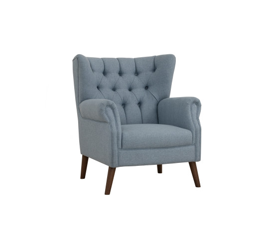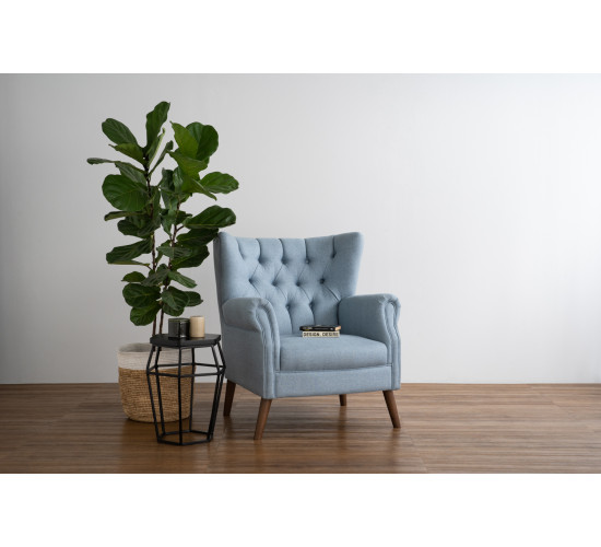 Sirion 1 seater sofa in Cocoa colour leg, Light Blue colour Doublet fabric