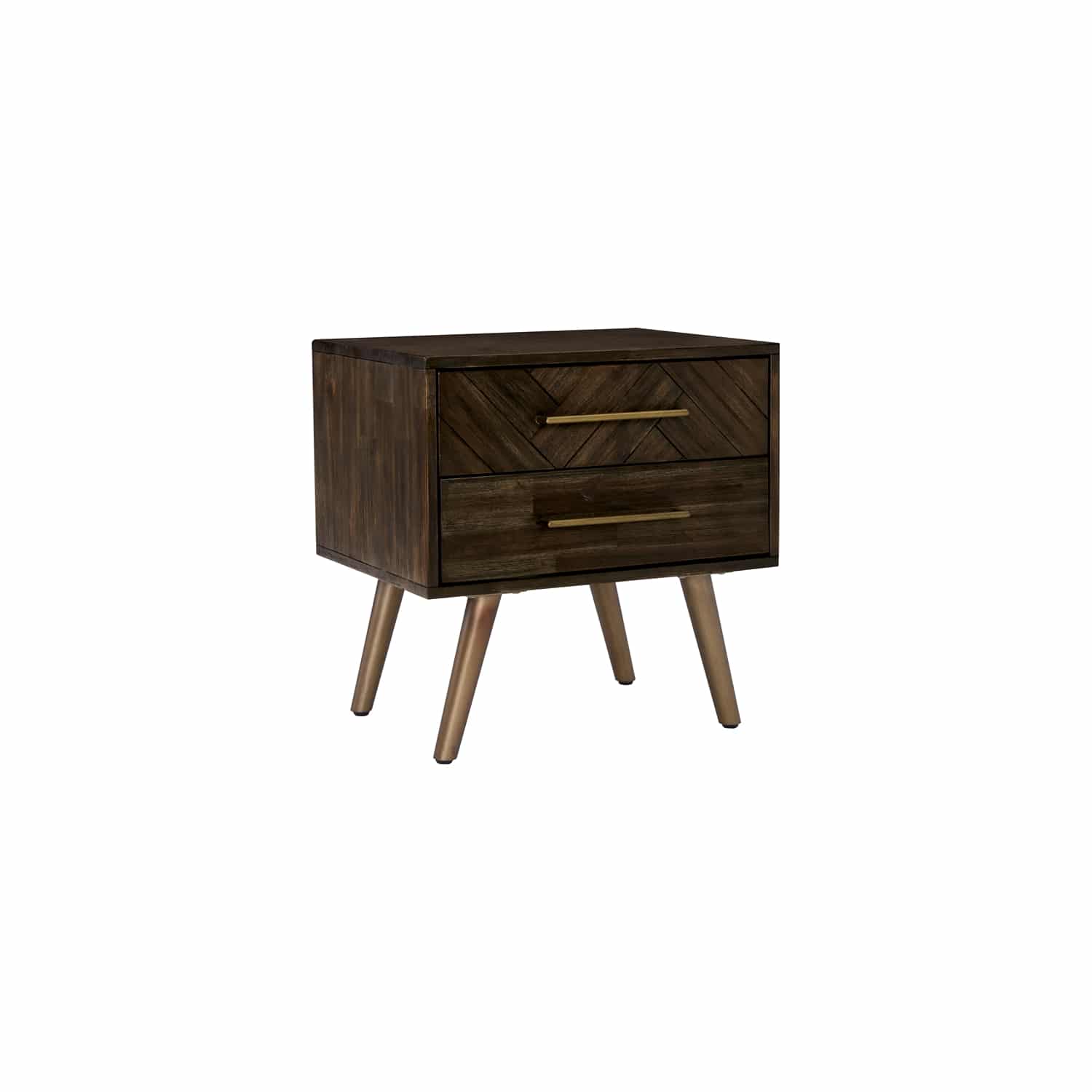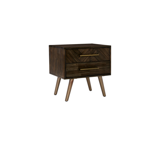 Sivan Bedside Table with 2 drawer with Dijon colour leg, Chocolate Tyrolean Beech body