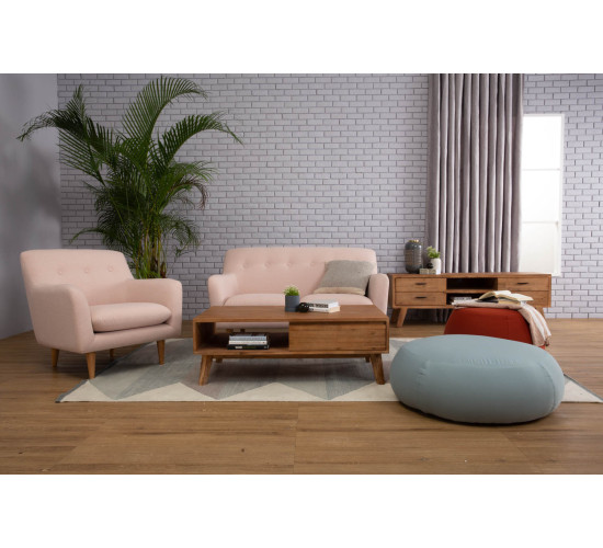 Sportage 2 Seater Sofa in Natural colour leg, Champagne colour Delaine fabric