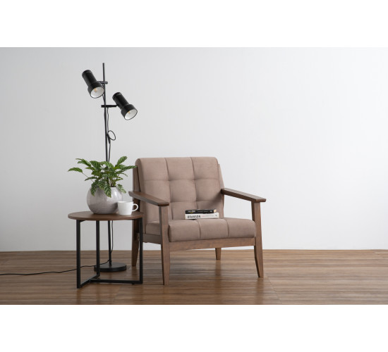 Terra 1 seater sofa in Cocoa colour leg, Light Brown colour Talco fabric