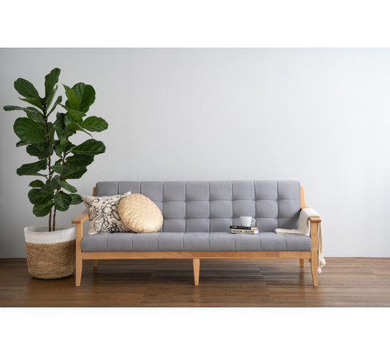 Terra 3 seater sofa in Natural colour leg, Pale Silver colour Talco fabric