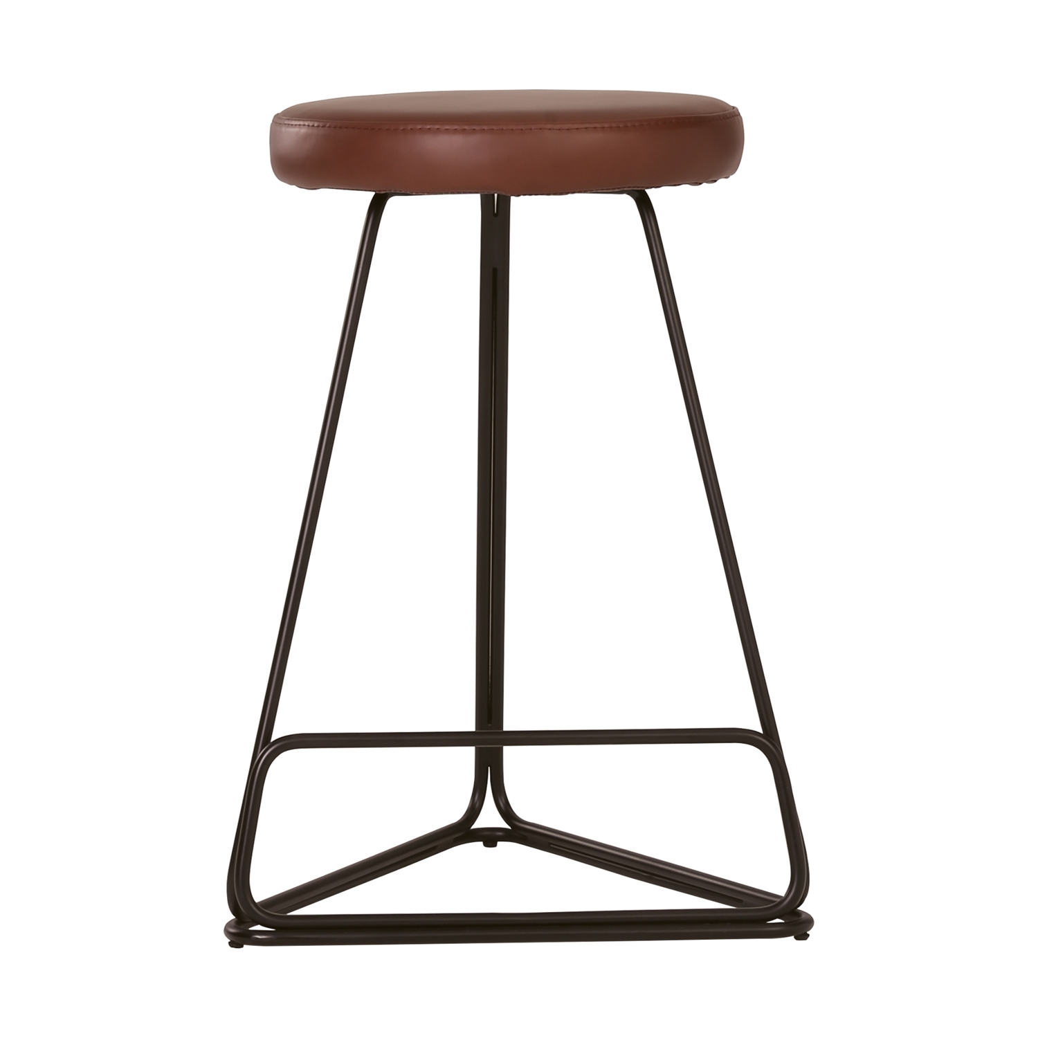 Tivona counter stool in Brown colour Aniline Leather seat on Matt Black Epoxy leg