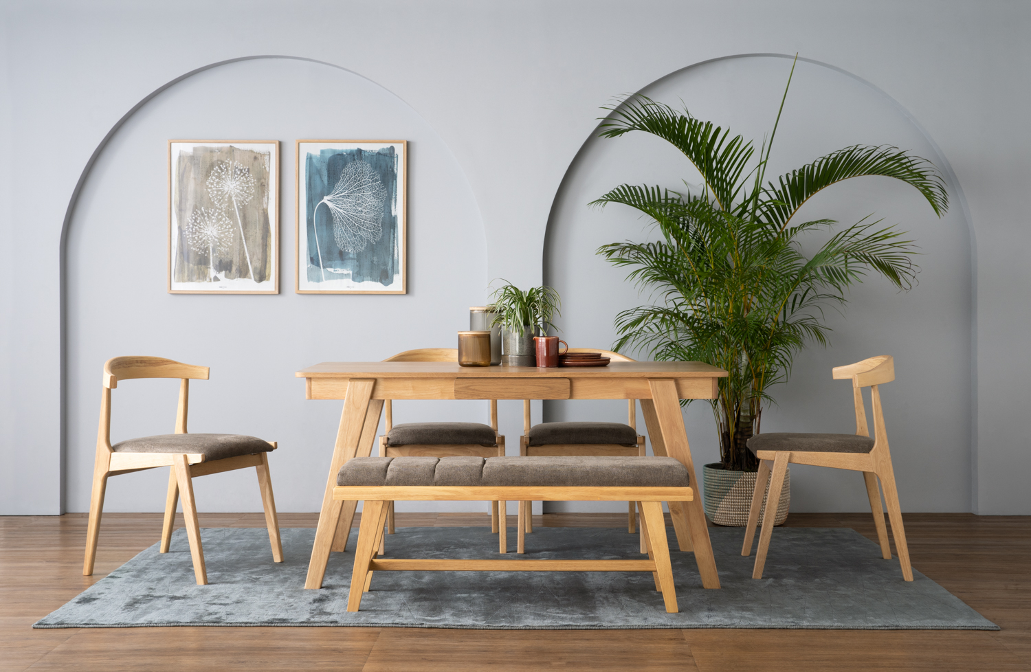 Tomiva 1.15m Bench with Natural colour leg, Oak colour Moleen fabric