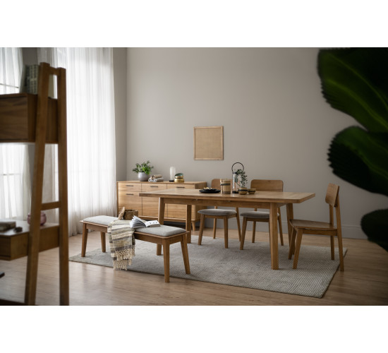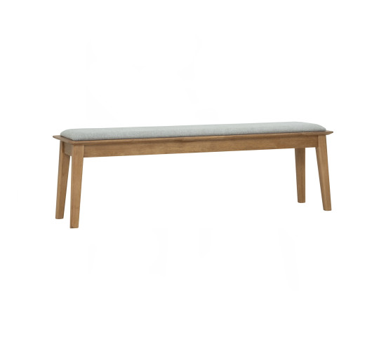 Toronto 1.5M Bench in Light Tennessee Walnut leg, Greymist colour Belfast fabric