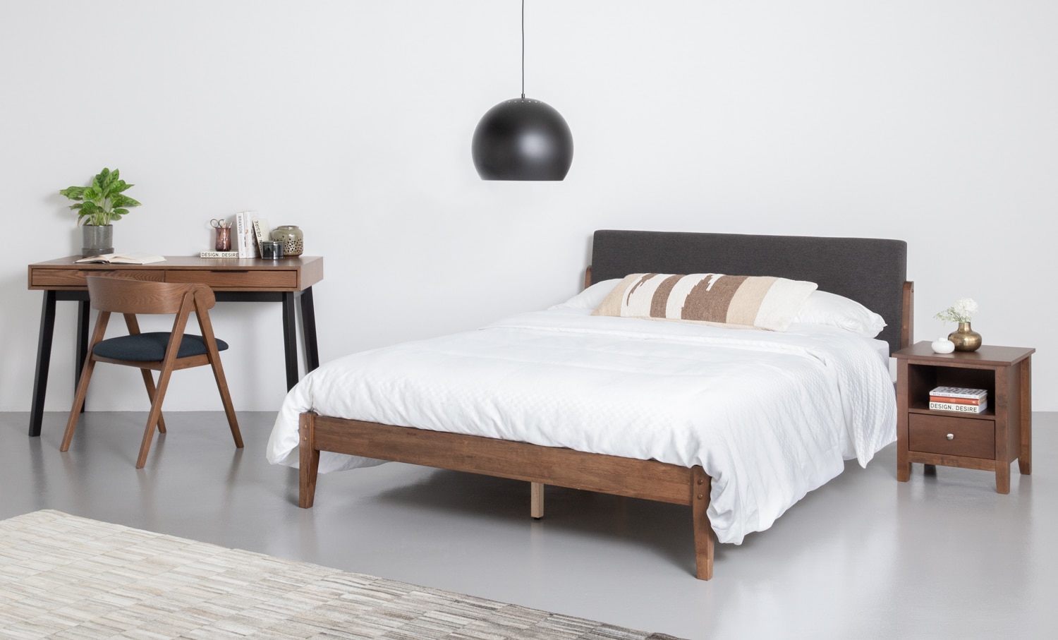 Tucker Queen Bed on Cocoa colour leg, Seal colour Dimity fabric (Fit mattress: 1520mm x 1910mm)