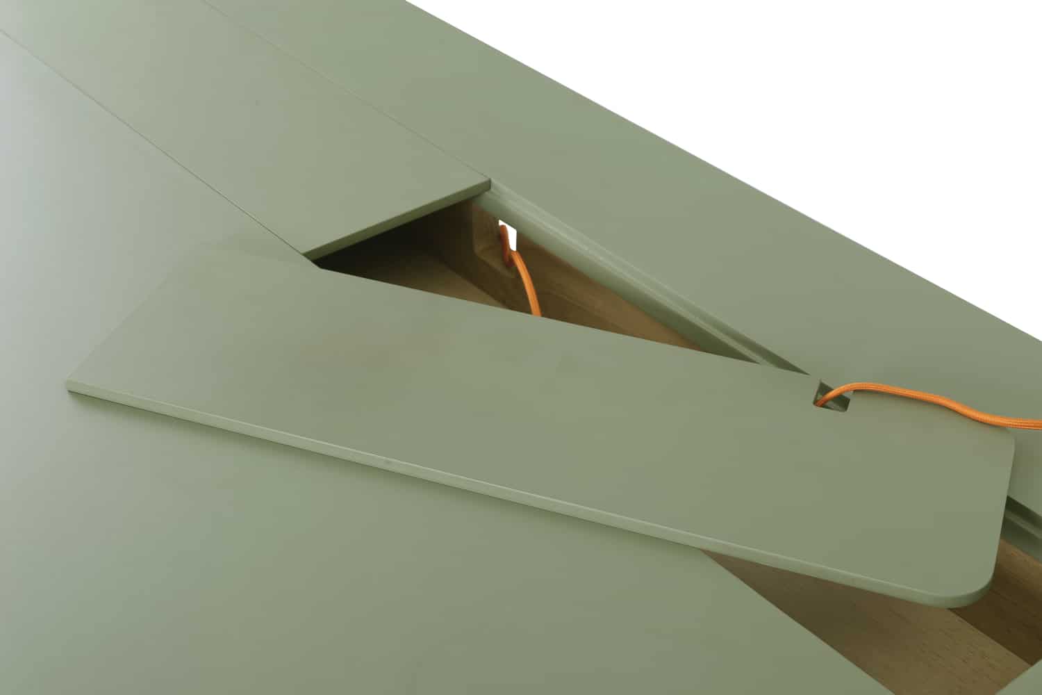 Tyrus 800×1600 working desk in Seaweed Green Linoleum top with Oak leg