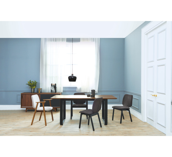Ulmer 1.8M dining table in Black colour leg, Oak laminate top