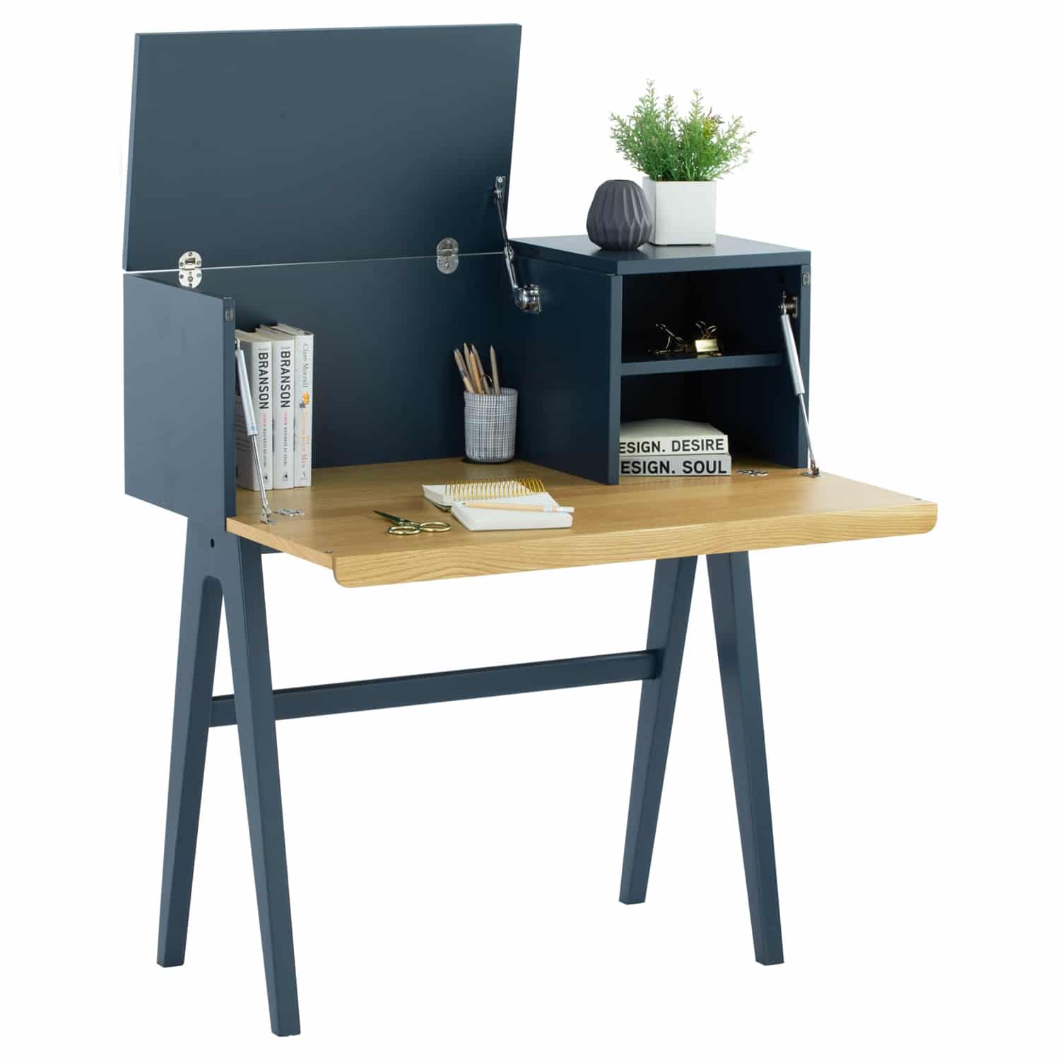 Valen working desk in Space Blue colour body, Oak colour door and Space Blue colour leg