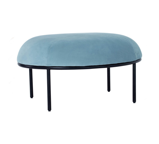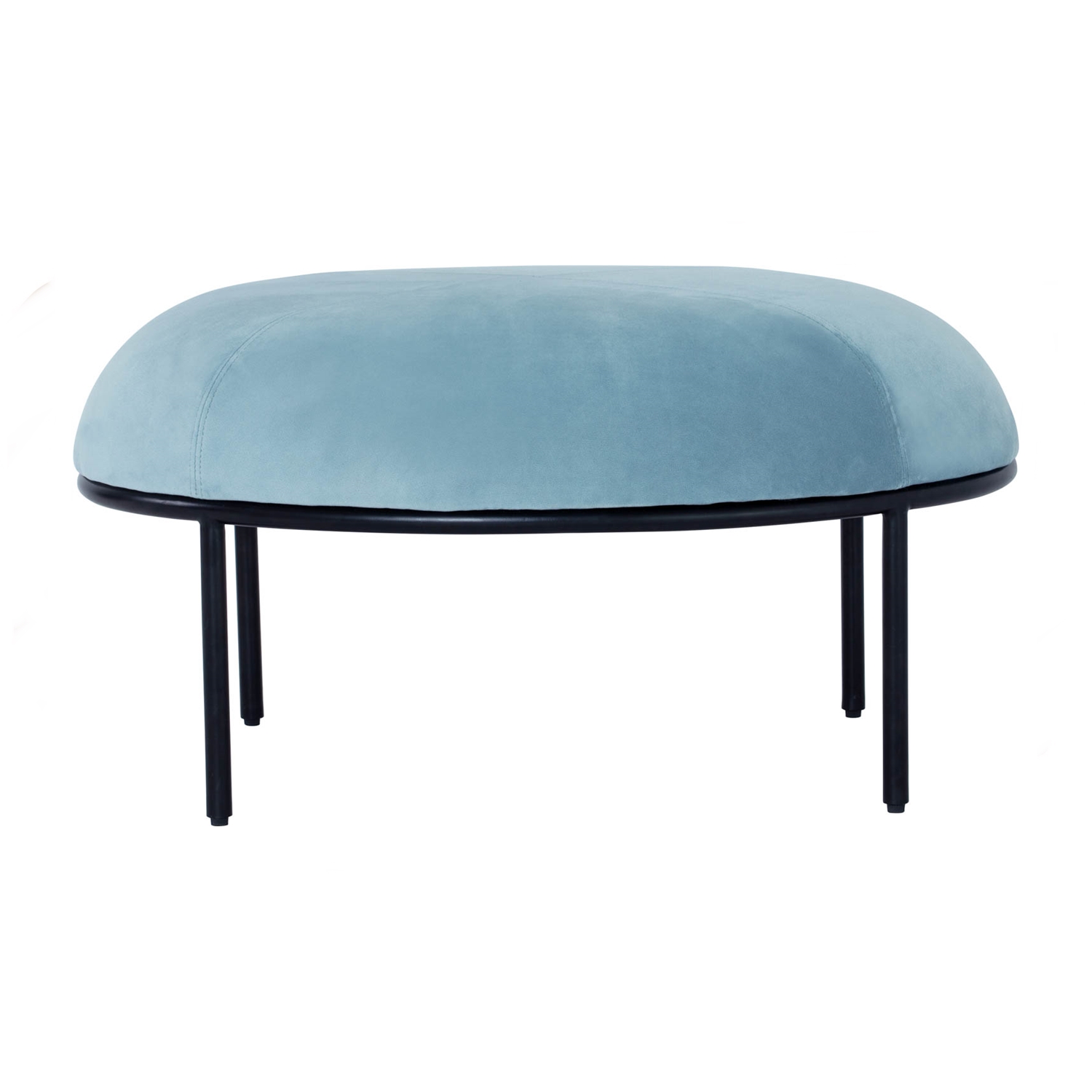 Vamos oval pouf with Matt Black Epoxy leg, Jade colour in Veloutine fabric