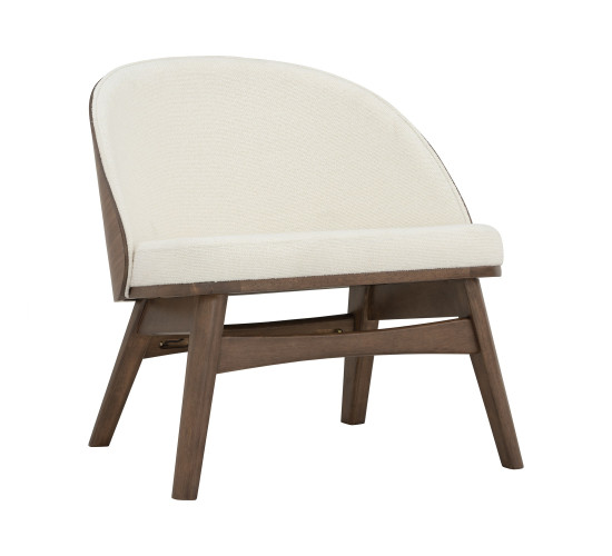 Veda lounge chair with Cocoa colour leg, Walnut veneer back and Cream White colour Ruby fabric