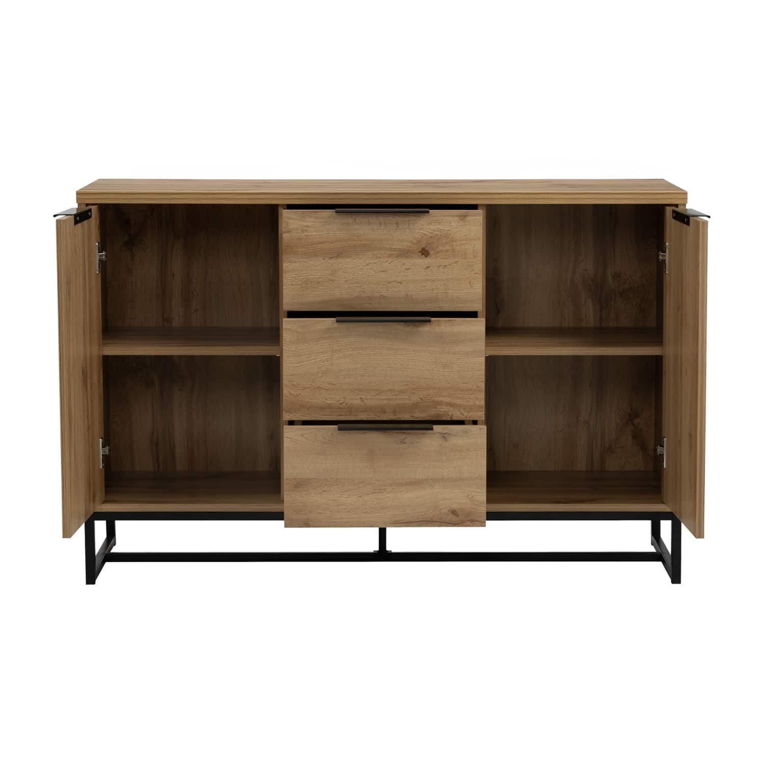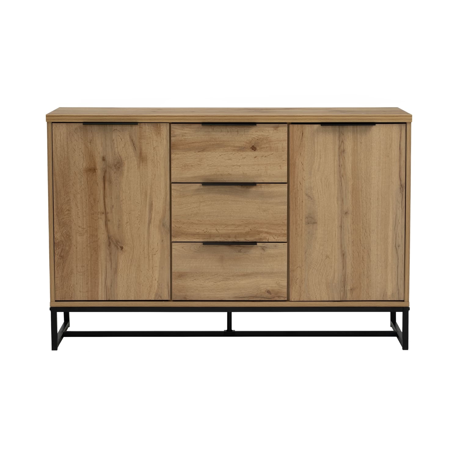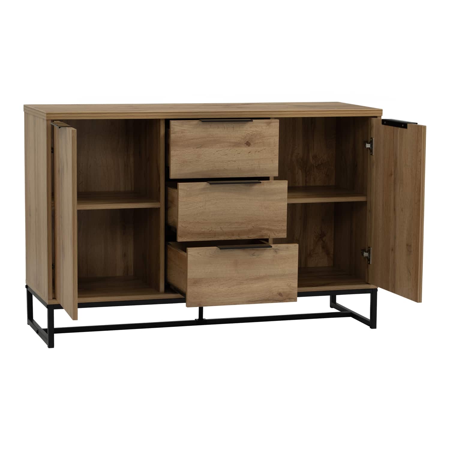 Waldo 1.2M Sideboard in Wotan Oak melamine body with Matt Black Epoxy colour leg