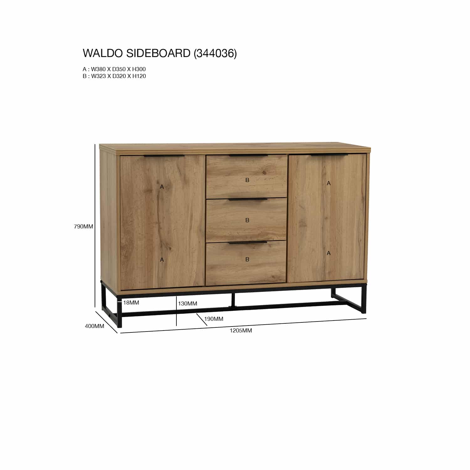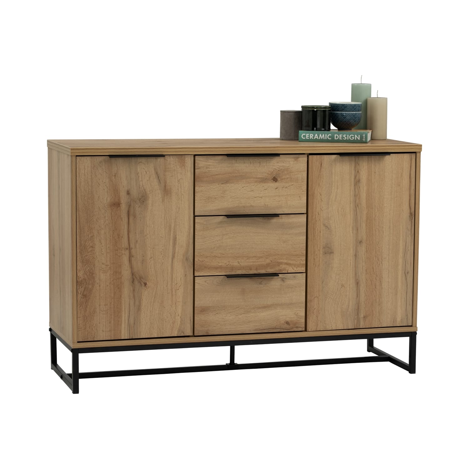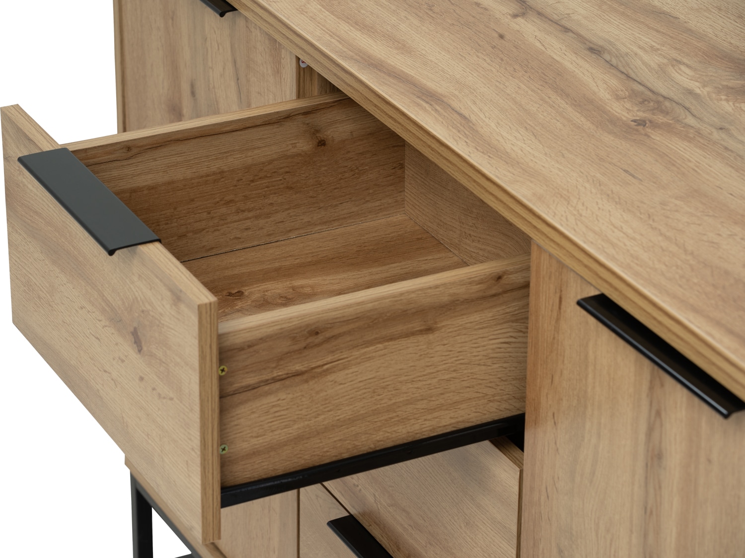 Waldo 1.2M Sideboard in Wotan Oak melamine body with Matt Black Epoxy colour leg