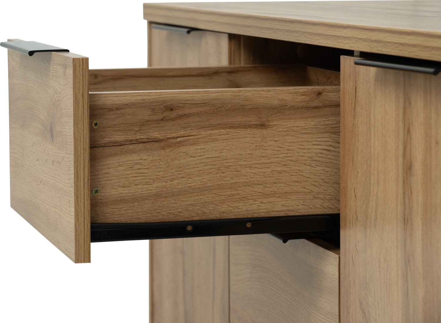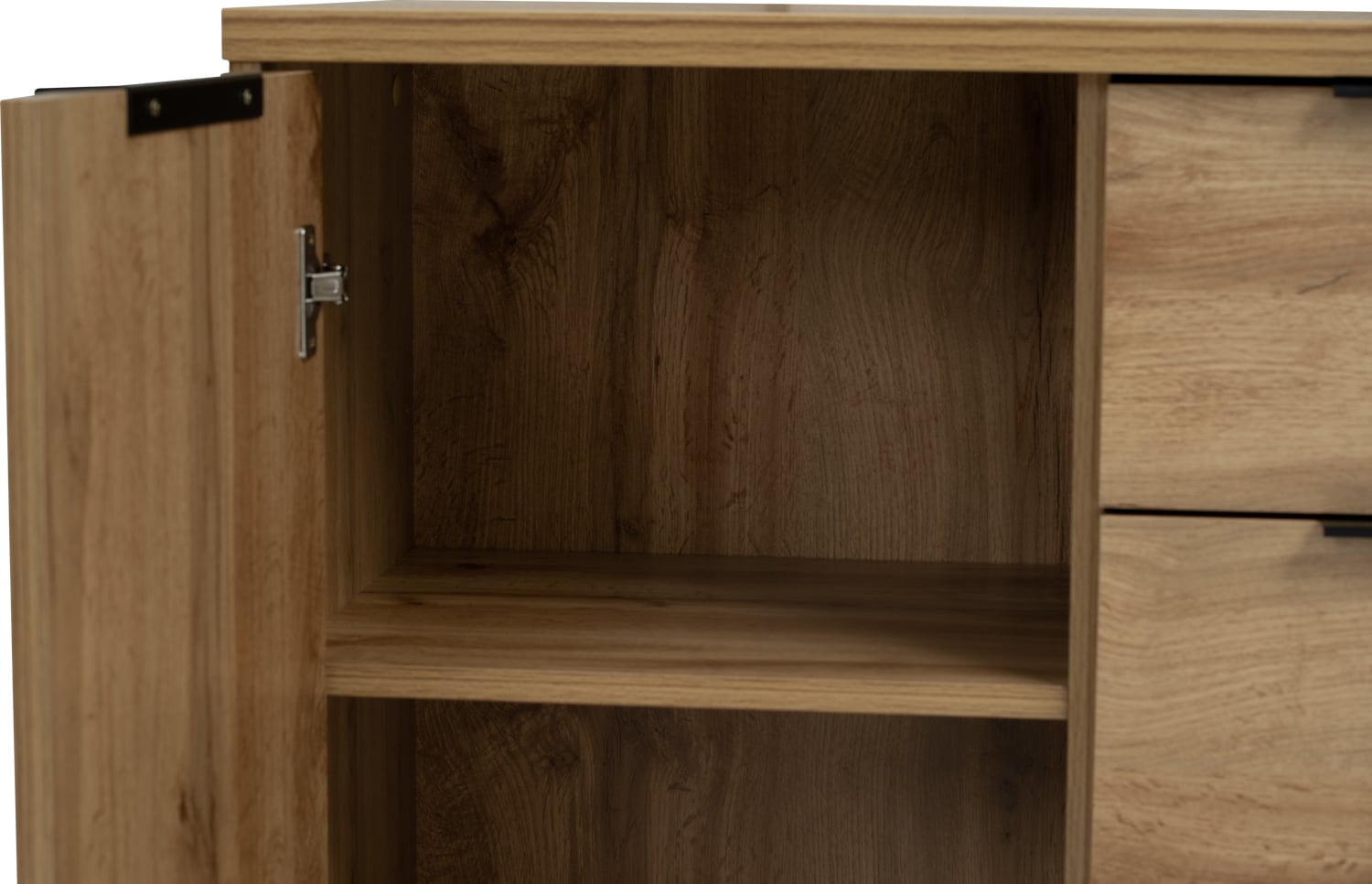 | Specifications | SIDEBOARD LEG: GREY802 MATT BLACK EPOXY SIDEBOARD FRAME: 179 WOTAN OAK SIDEBOARD DOOR: 179 WOTAN OAK |