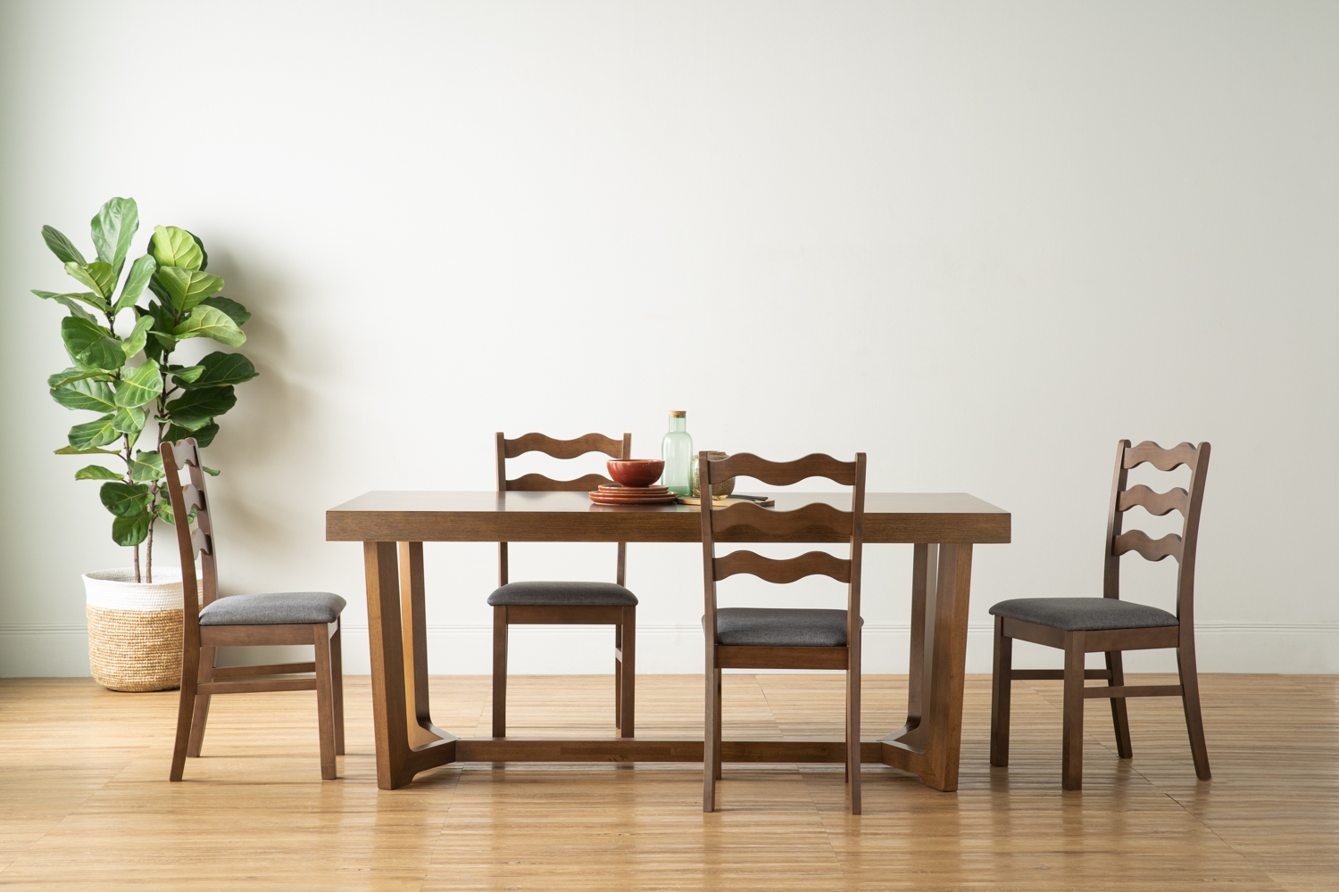 Willa dining chair with Cocoa colour leg, Grey colour Recta fabric
