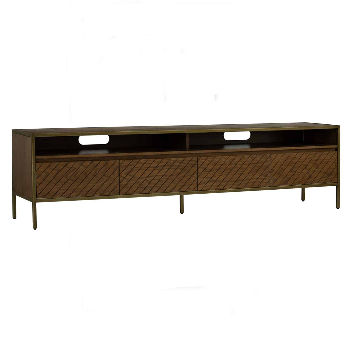 Willingham 2.1M TV Cabinet with Brushed Brass colour frame, Boston Cherry colour body