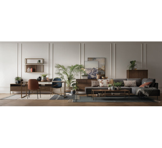 Willingham 900x1600 Dining Table with Brushed Brass colour frame, Boston Cherry colour top
