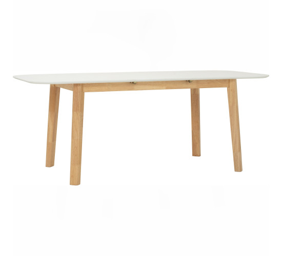 Woyer 900×1500+450 extension table in Natural colour leg, White Lacquered top