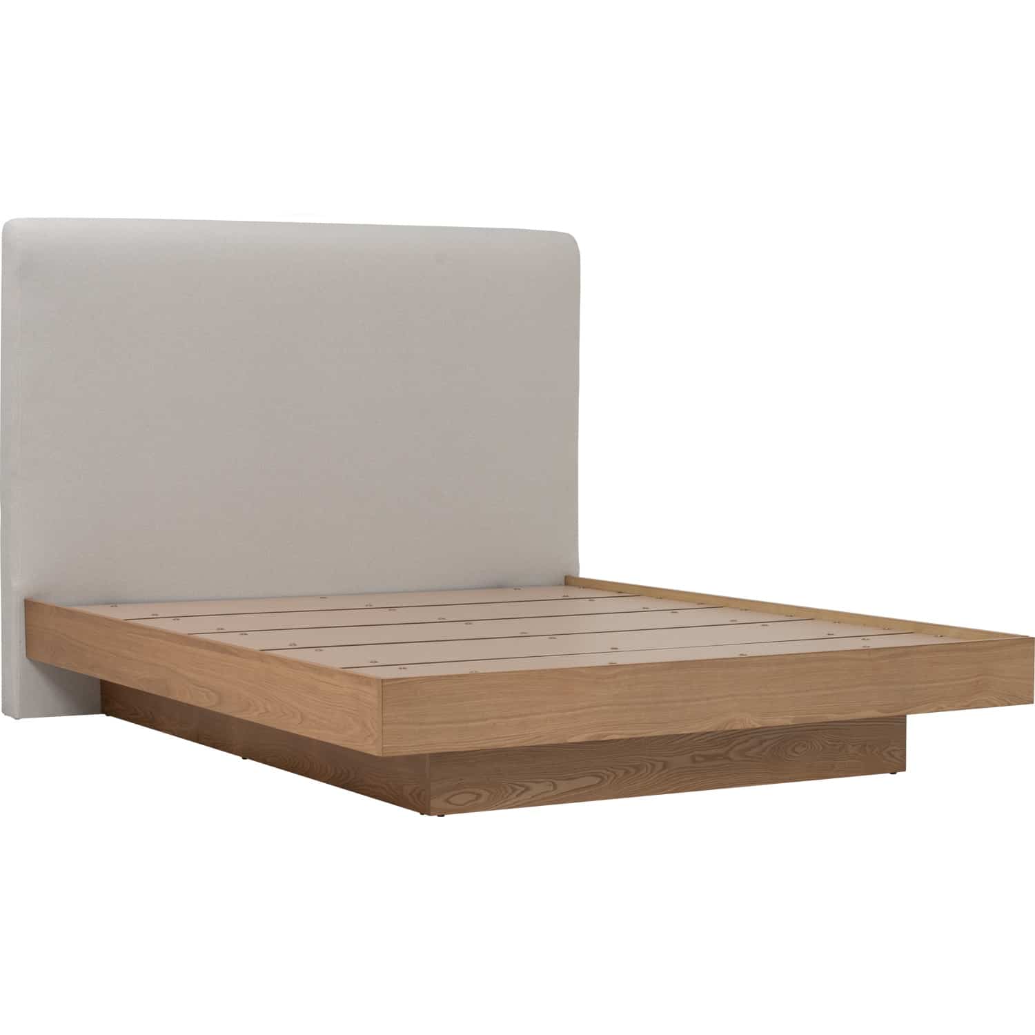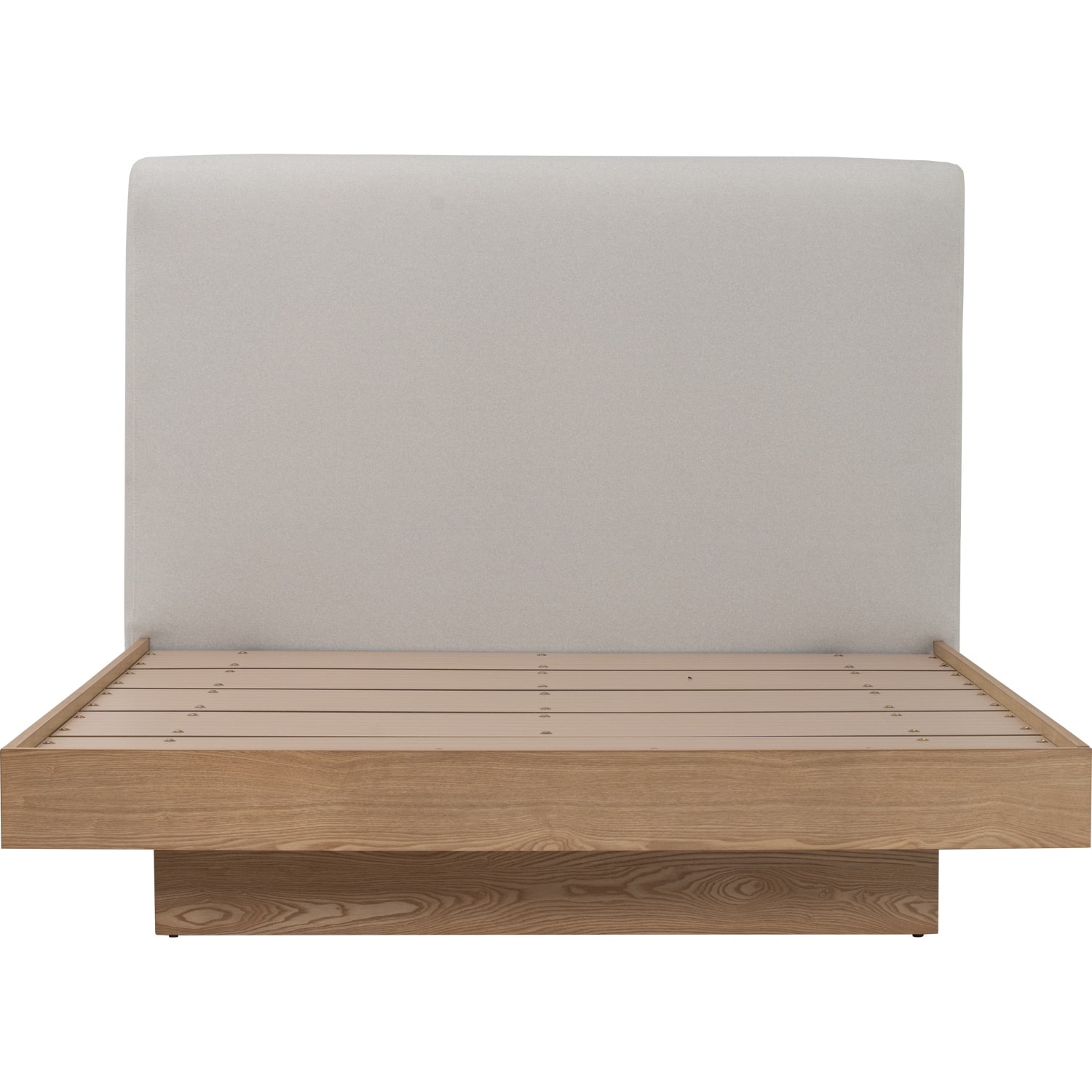 Yume Queen Bed with storage on Natural colour body, Grey Mist colour Mohair fabric (Pet friendly fabric) (Fit mattress: 1530x1930mm - Bed Panel)